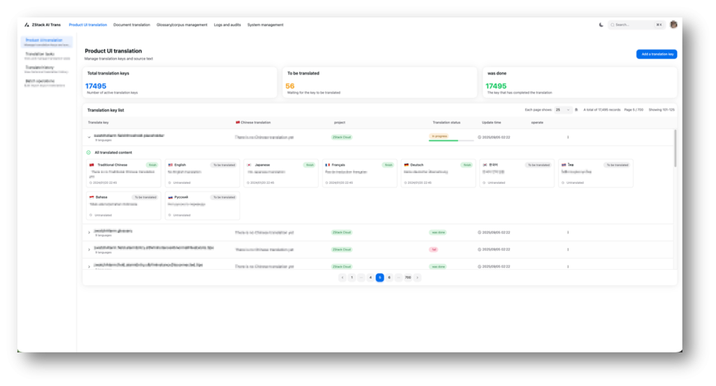 Figure 7: ZStack AI Translation (Multilingual) Platform UI